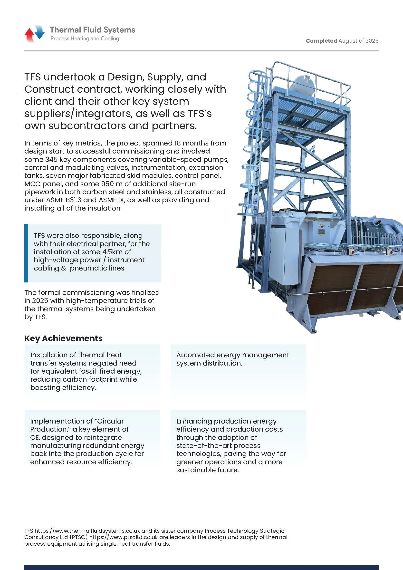Thermal Fluid Systems Ltd along with its sister company PTSC have been at the forefront of energy transfer systems to aid production developments in industrial “Circular Economy” (CE) these include.